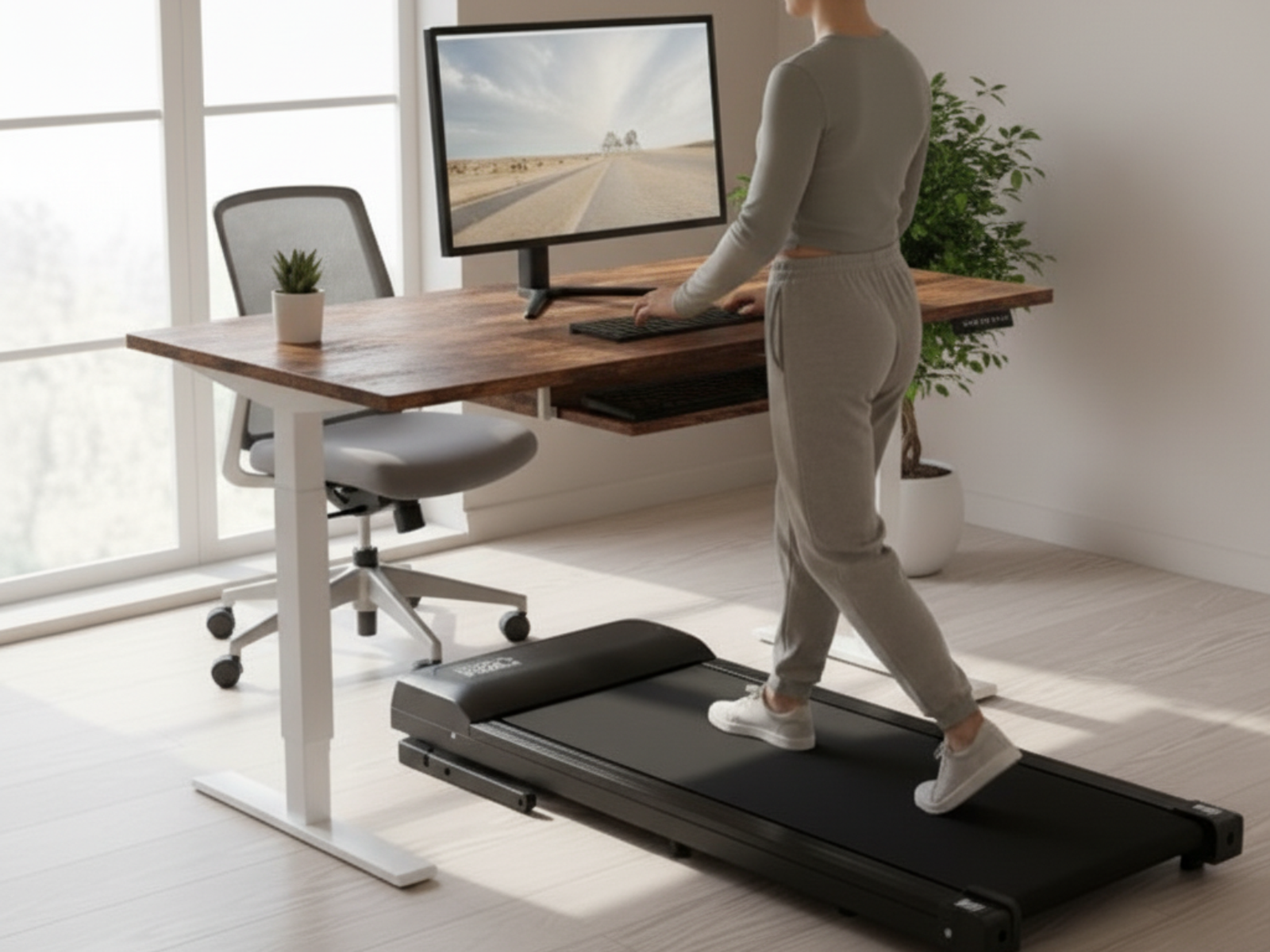Walking Pad ModernHome łączy nowoczesny design z funkcjonalnością i wygodą użytkowania. Dzięki kompaktowej formie i cichej pracy pozwala utrzymać aktywność nawet w małych pomieszczeniach. W przeciwieństwie do standardowych bieżni, ten model można łatwo schować po zakończonym treningu, co czyni go idealnym rozwiązaniem do domu lub biura.