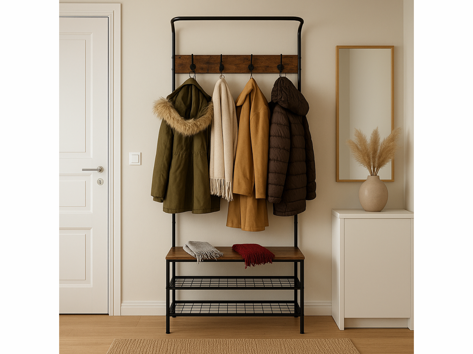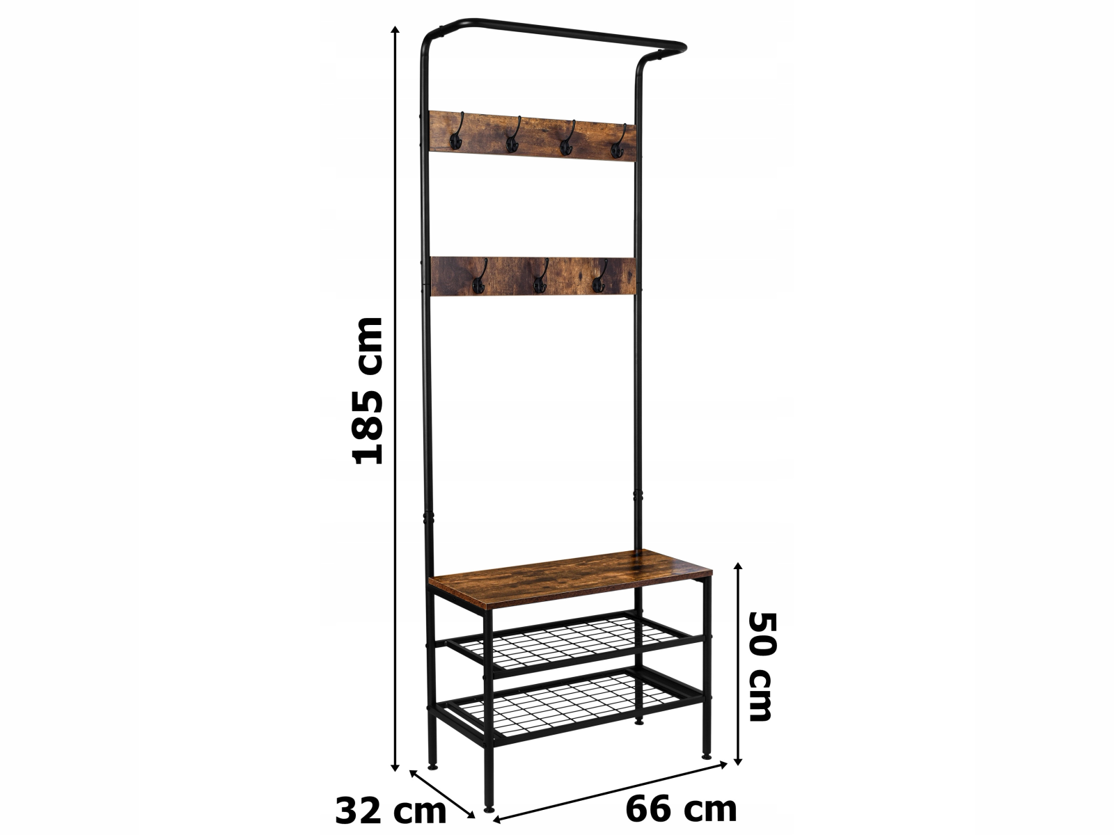Ten model łączy w sobie elegancki loftowy wygląd z praktycznymi rozwiązaniami. W jednym meblu znajdziesz miejsce na kurtki, buty i dodatki – wszystko zorganizowane i pod ręką. Wysoka jakość wykonania zapewnia stabilność i trwałość przez lata.
